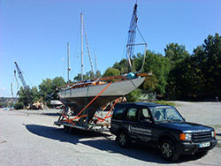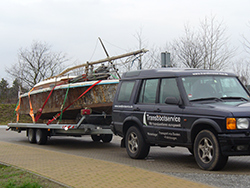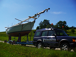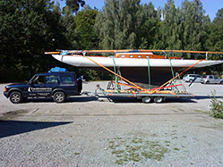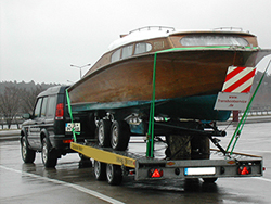 Transport Boot mit Lagerbock auf Multifunktionstrailer